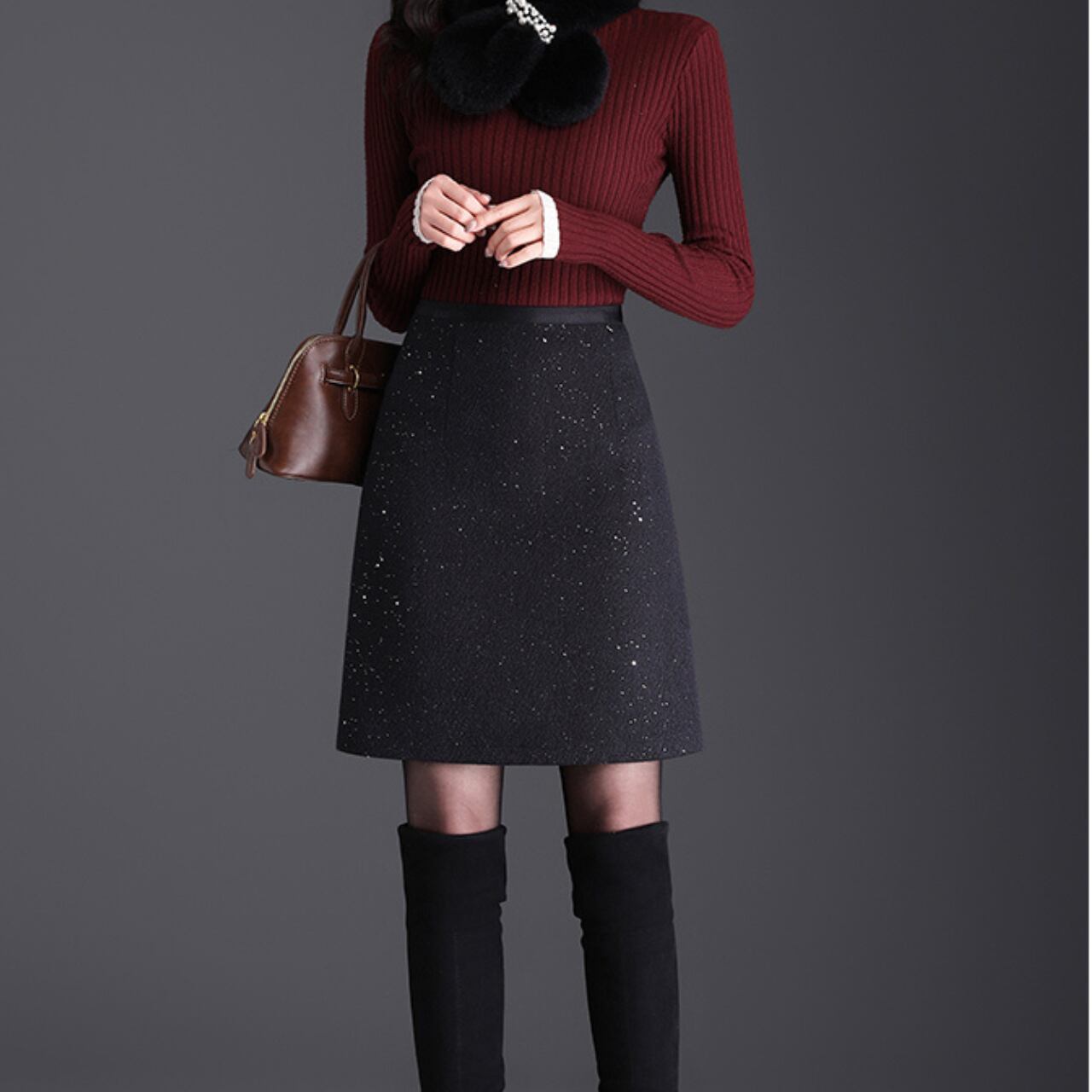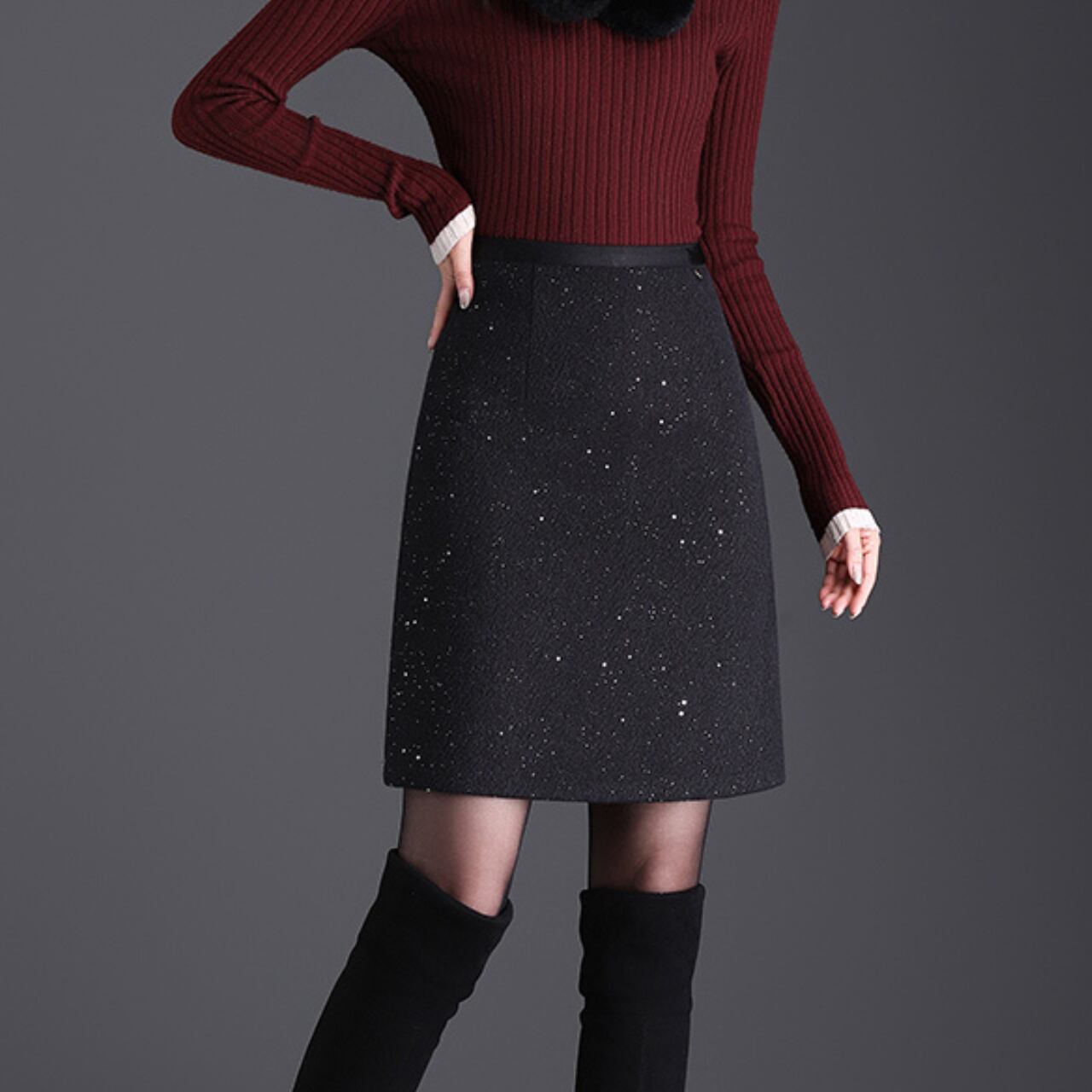 膝丈 ツイードAラインスカート 2col 00016