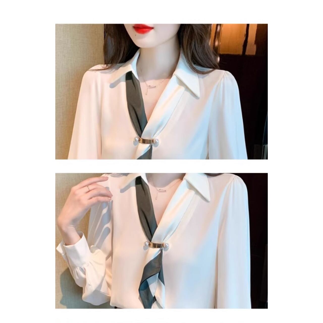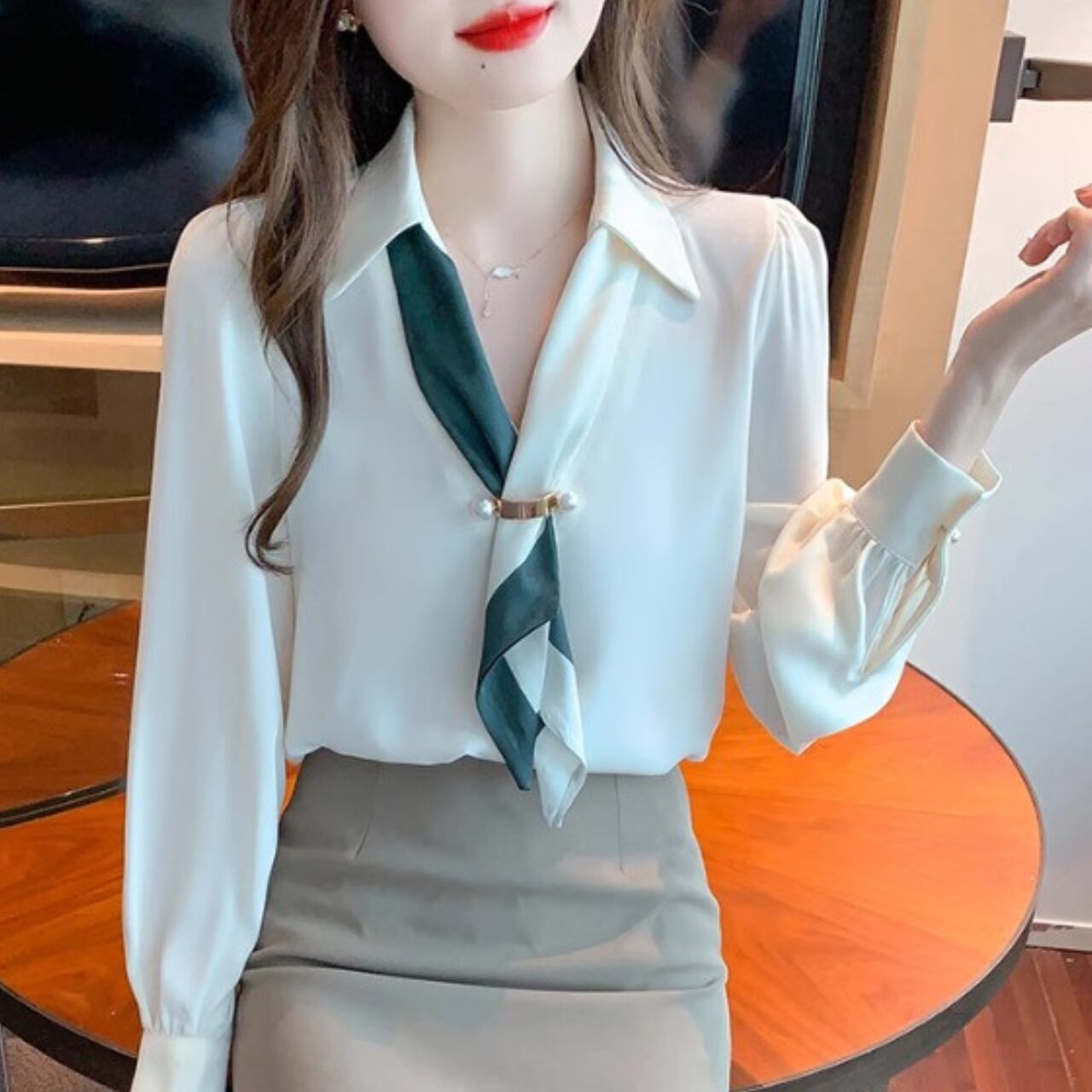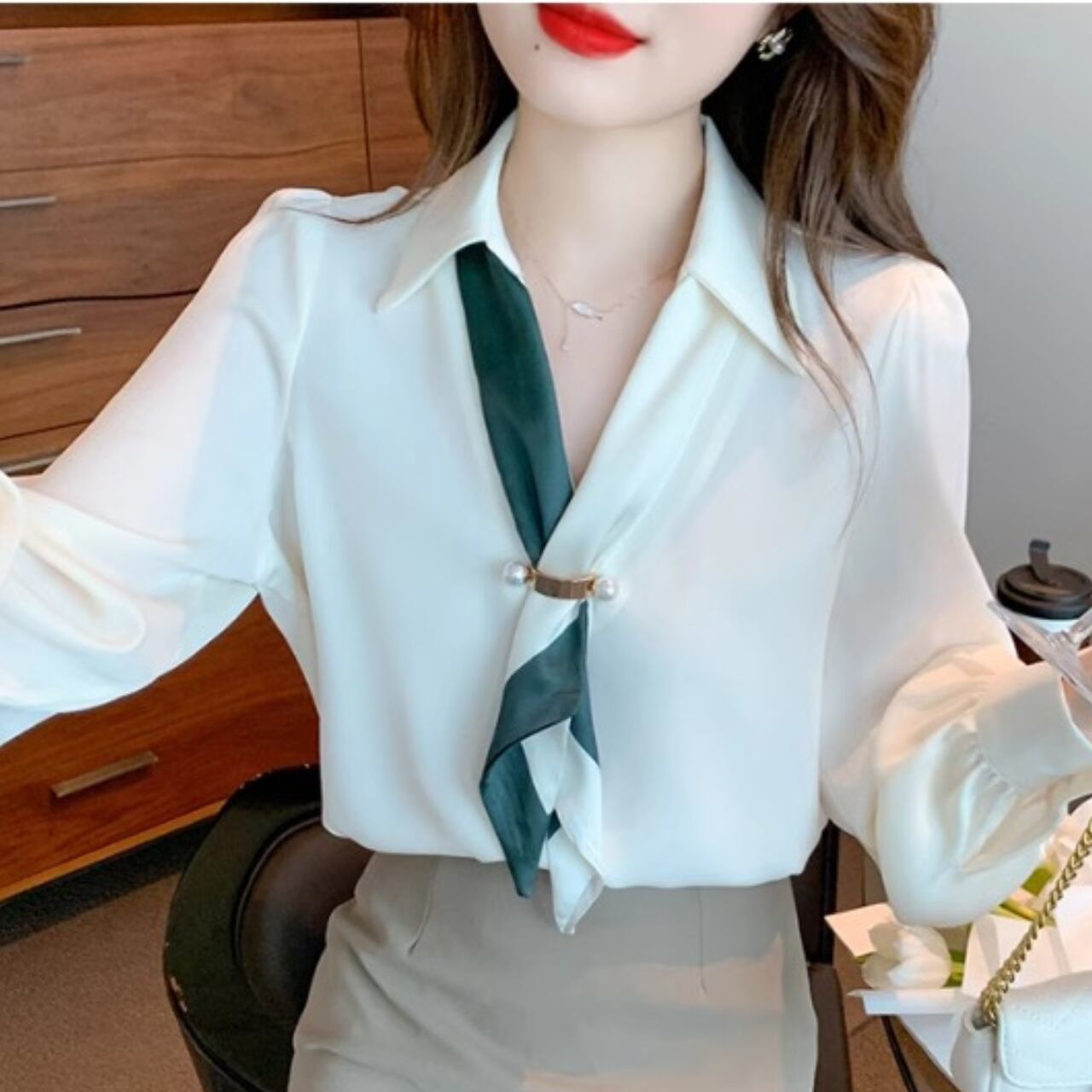 スカーフ風 長袖 シャツ ブラウス 3col 00001