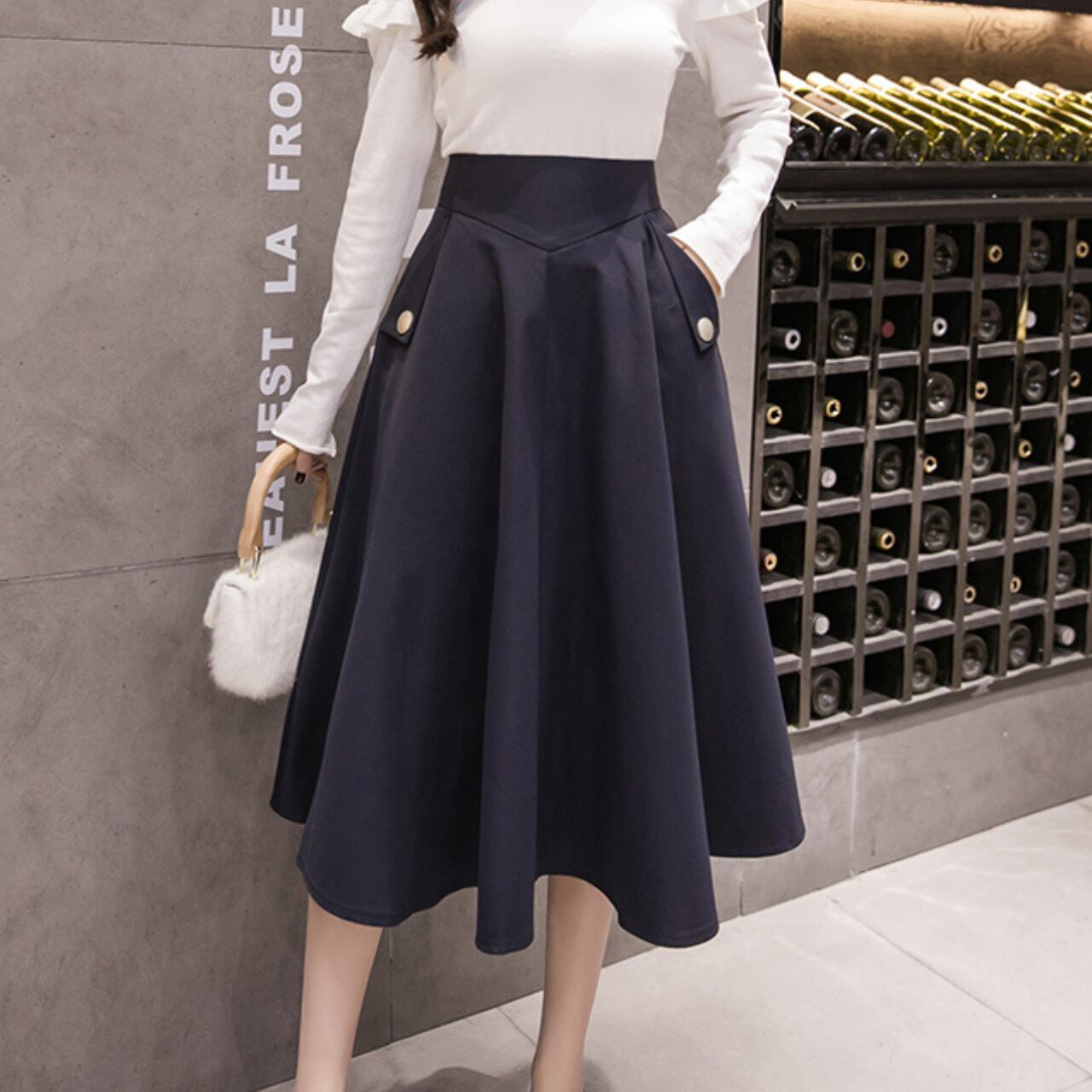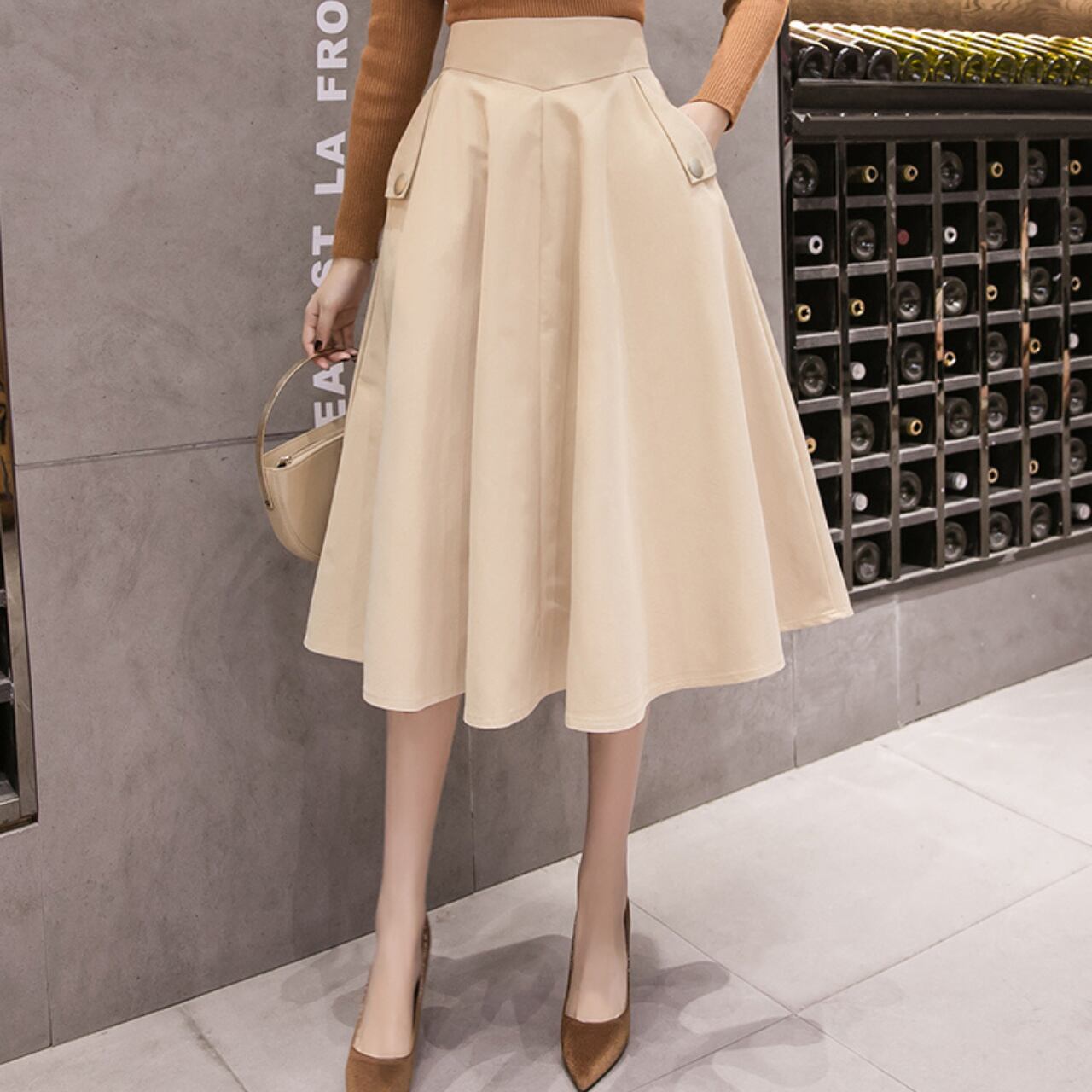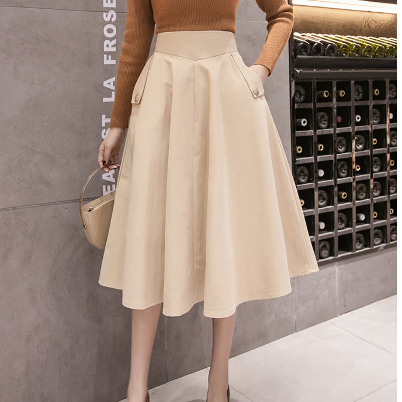 パッチポケット Aライン ミモレ丈 スカート 3col 00020