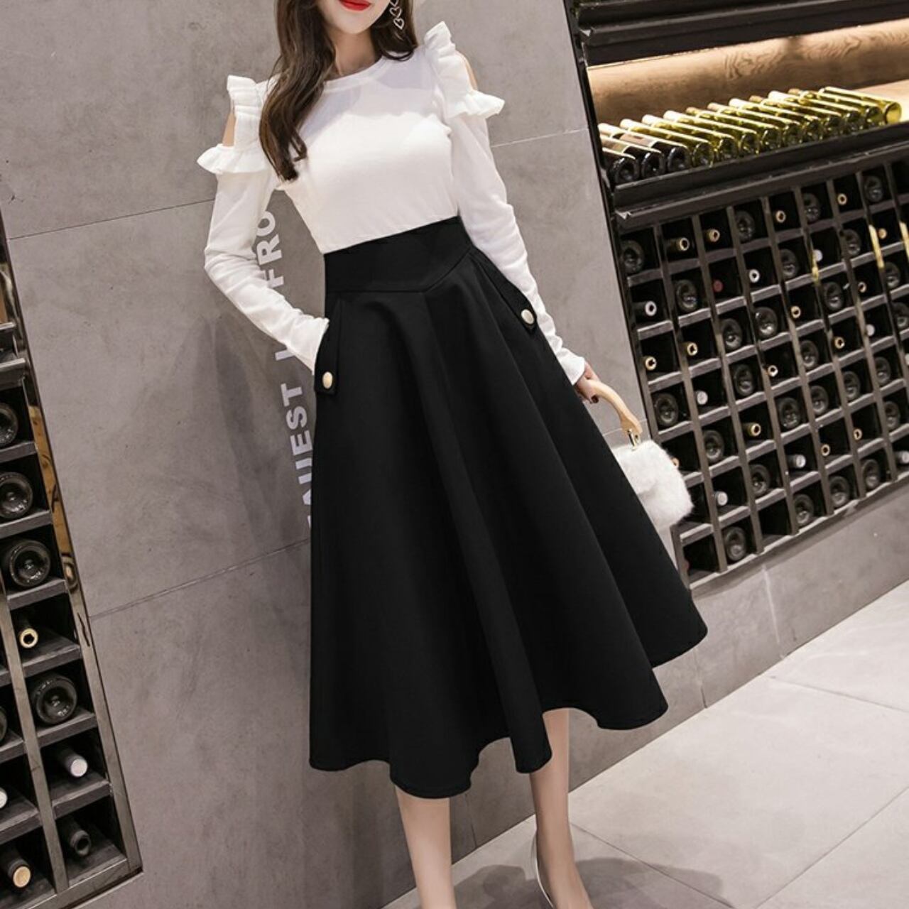 ブラウスやニットと合わせれば、オフィスシーンにも対応できます。