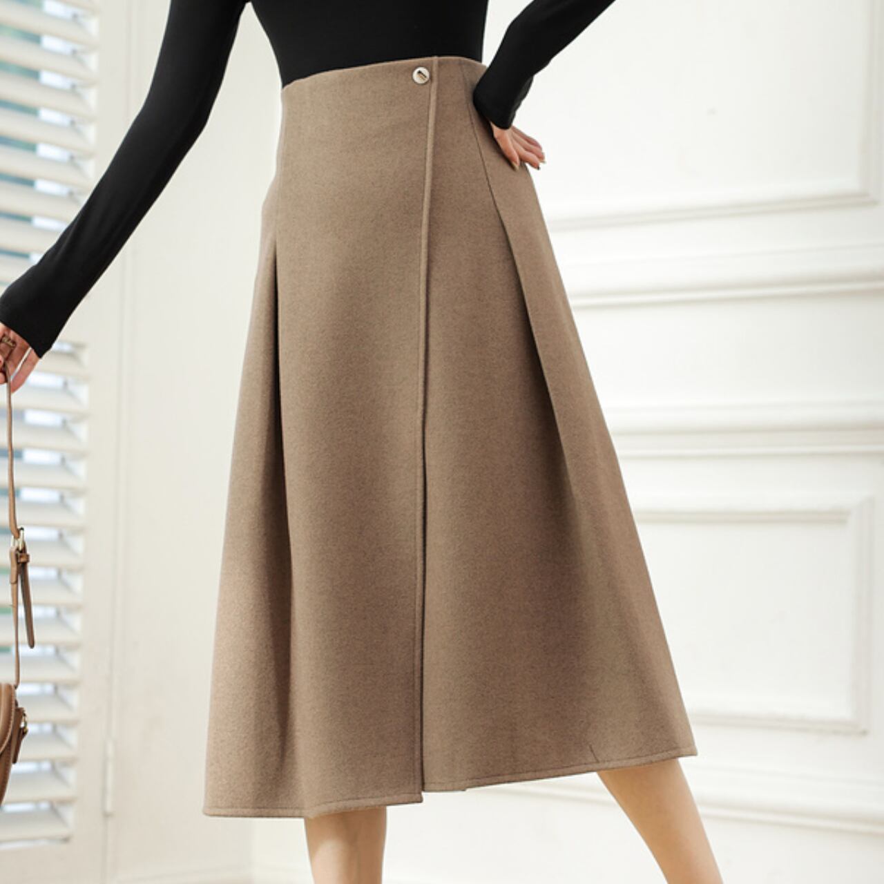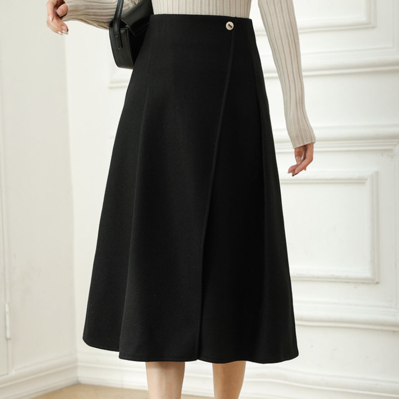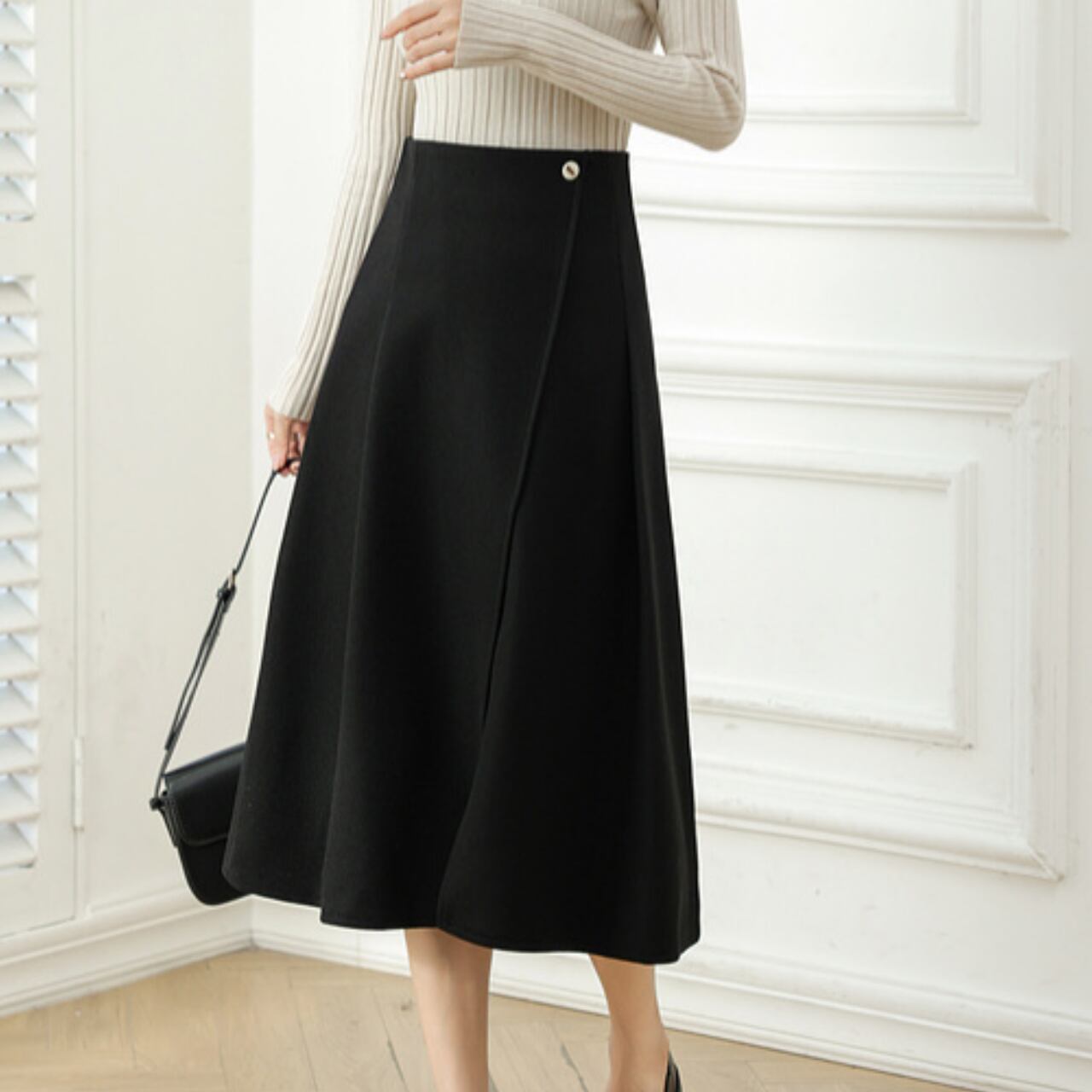 ラップ風 ミモレ丈 フレアスカート 2col 00021