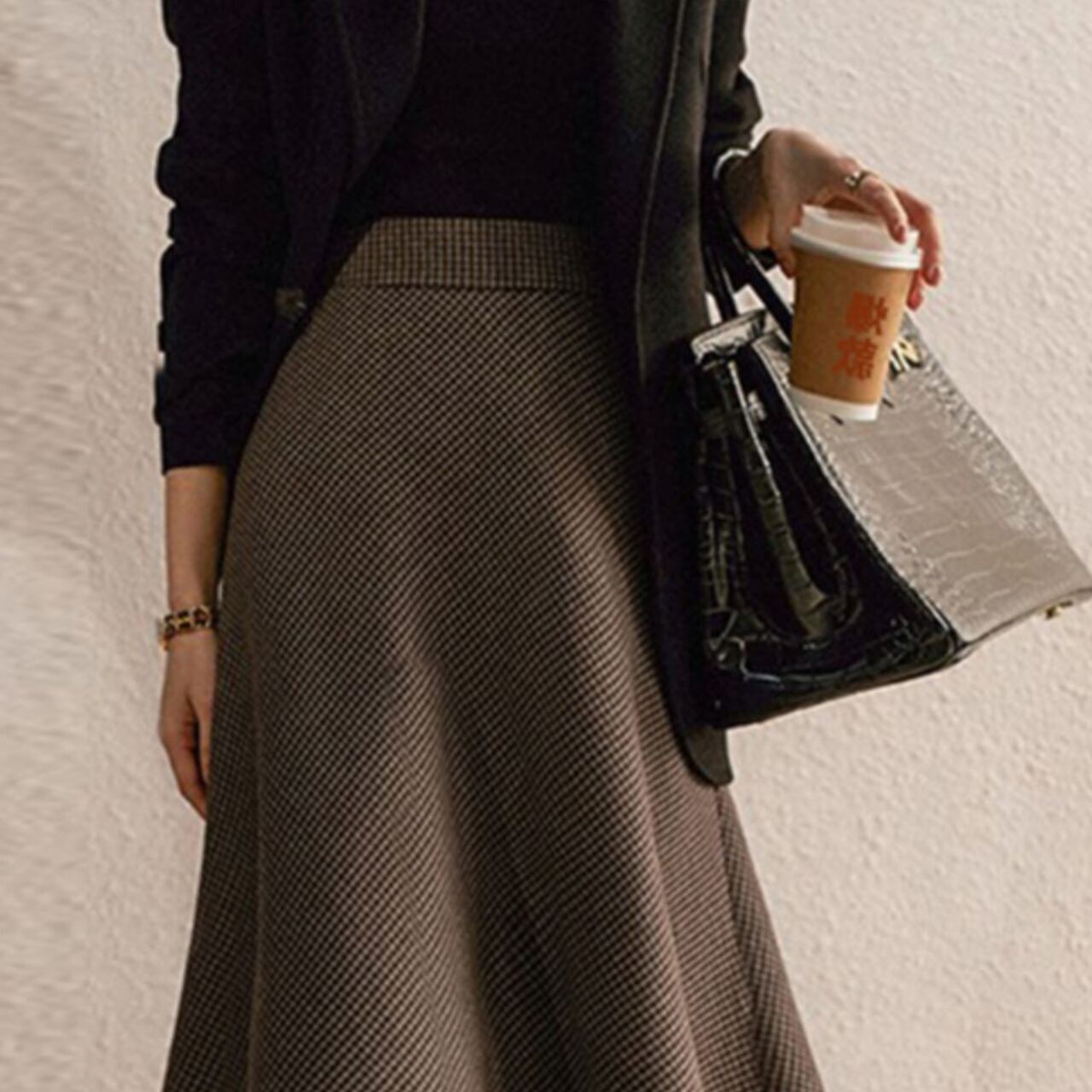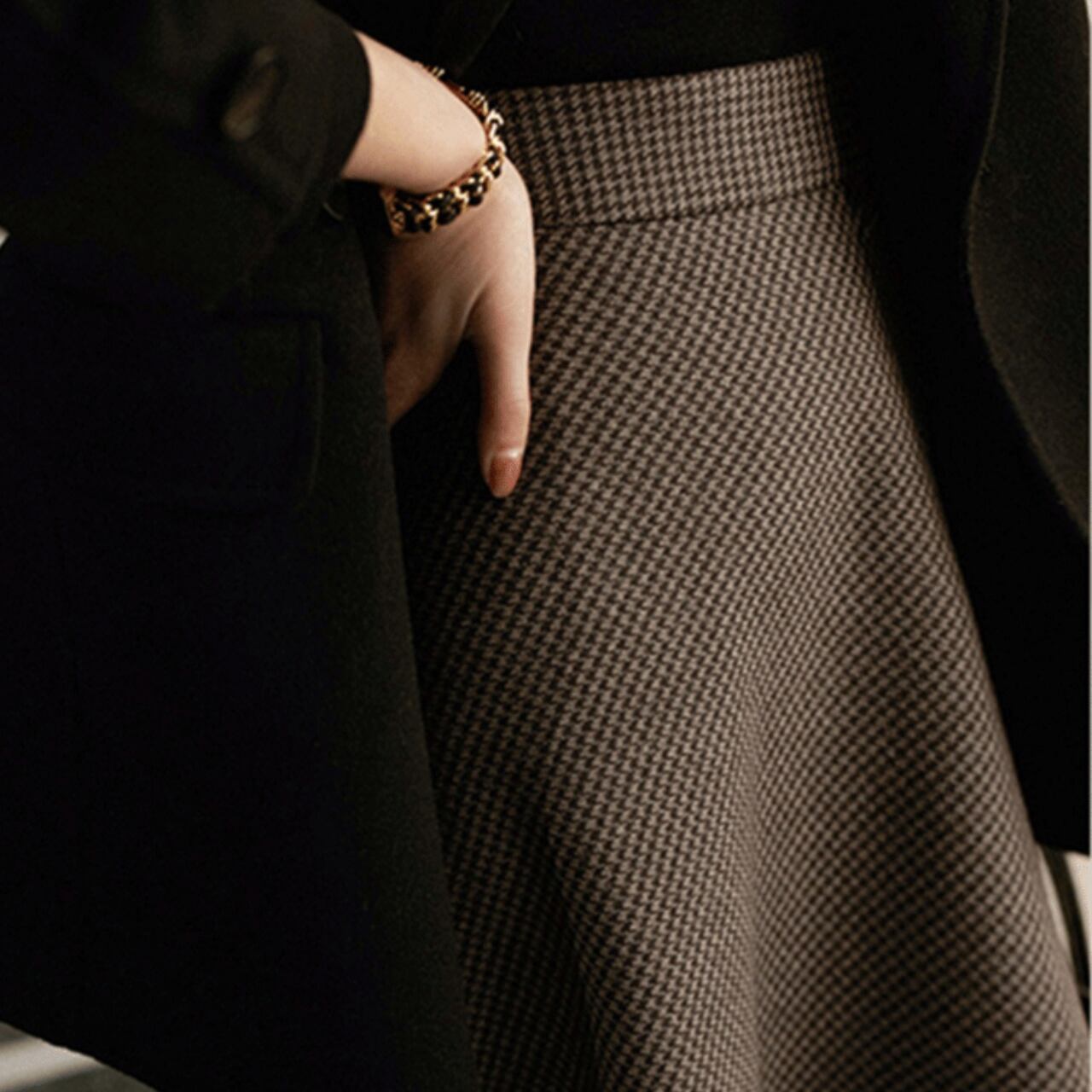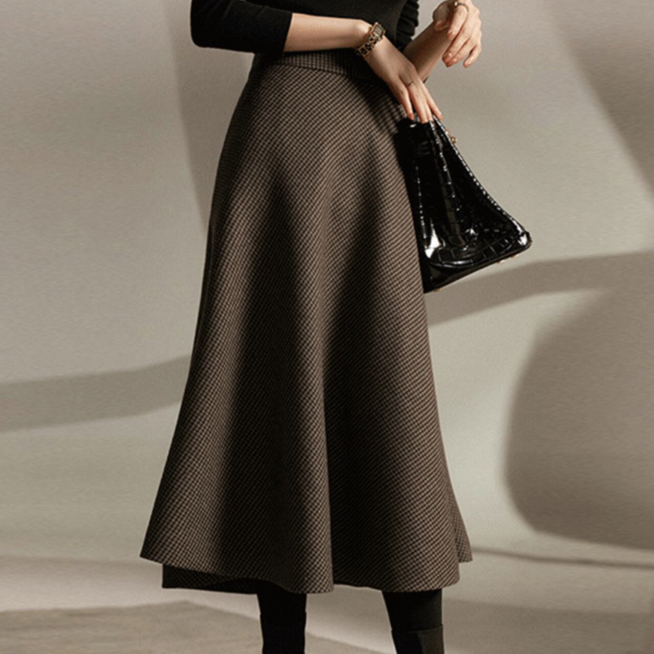 千鳥柄 ミモレ丈 Aラインスカート 1col 00022