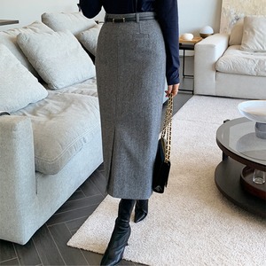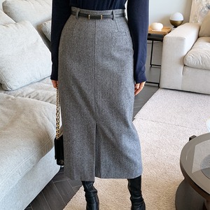 上品で落ち着いた印象のミモレ丈タイトスカート。