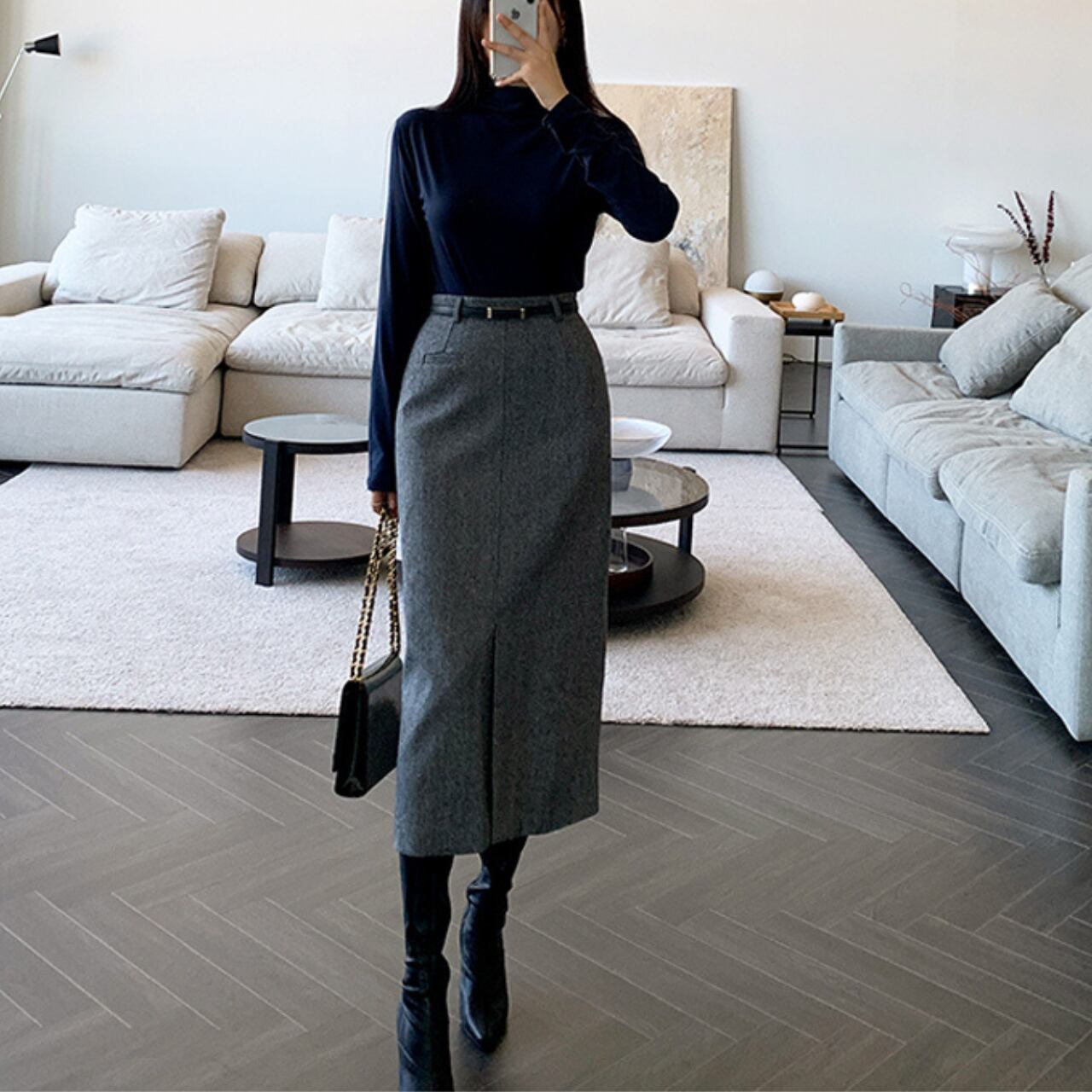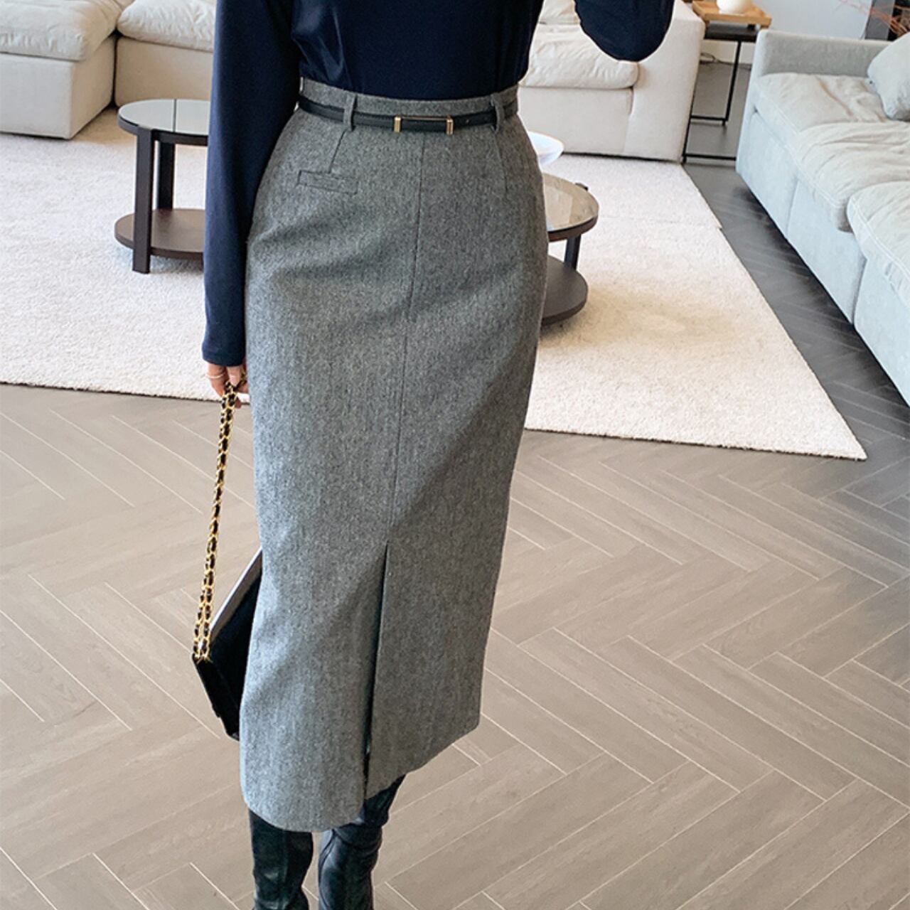デザインポイント: ハイウエスト/ミモレ丈/タイトシルエット