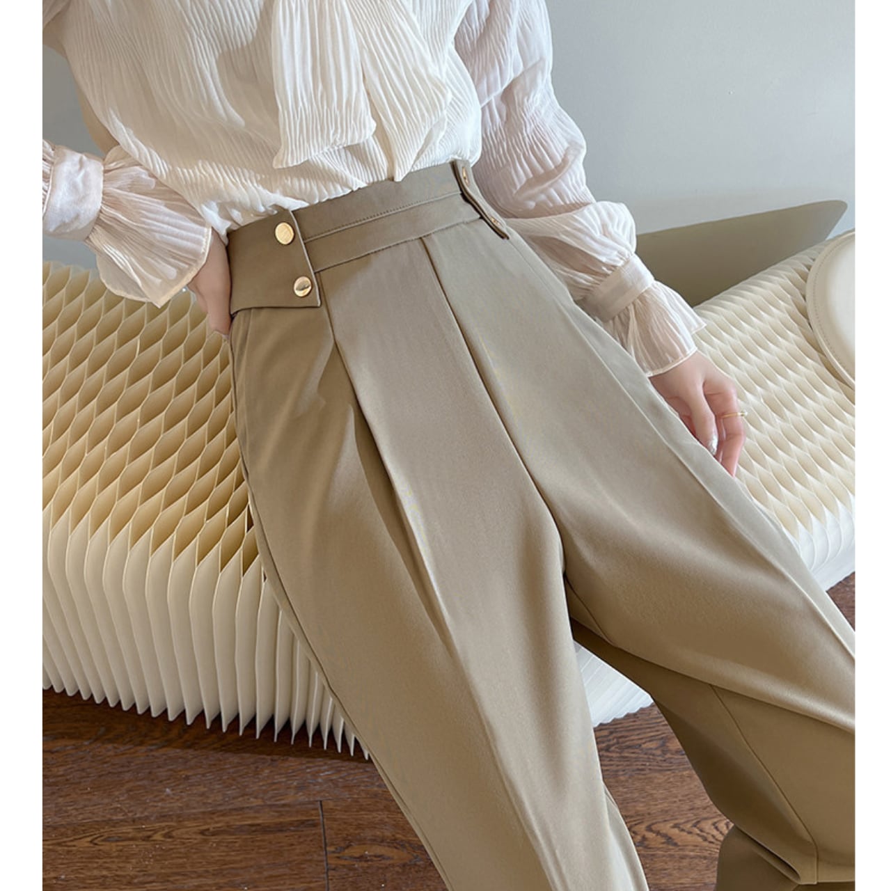 深めのタックが作り出す美しいシルエットが魅力。