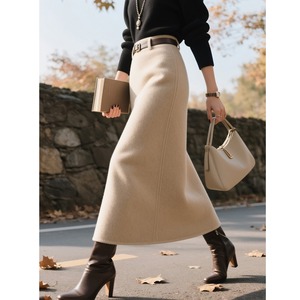 ベルト付き ストレート ミモレ丈 スカート 1col 00032