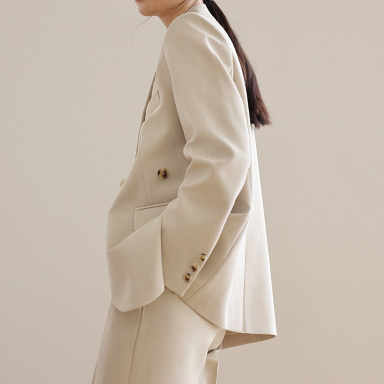 ダブルブレスト ヒップ丈 ノッチドラペル ジャケット 3col 00029