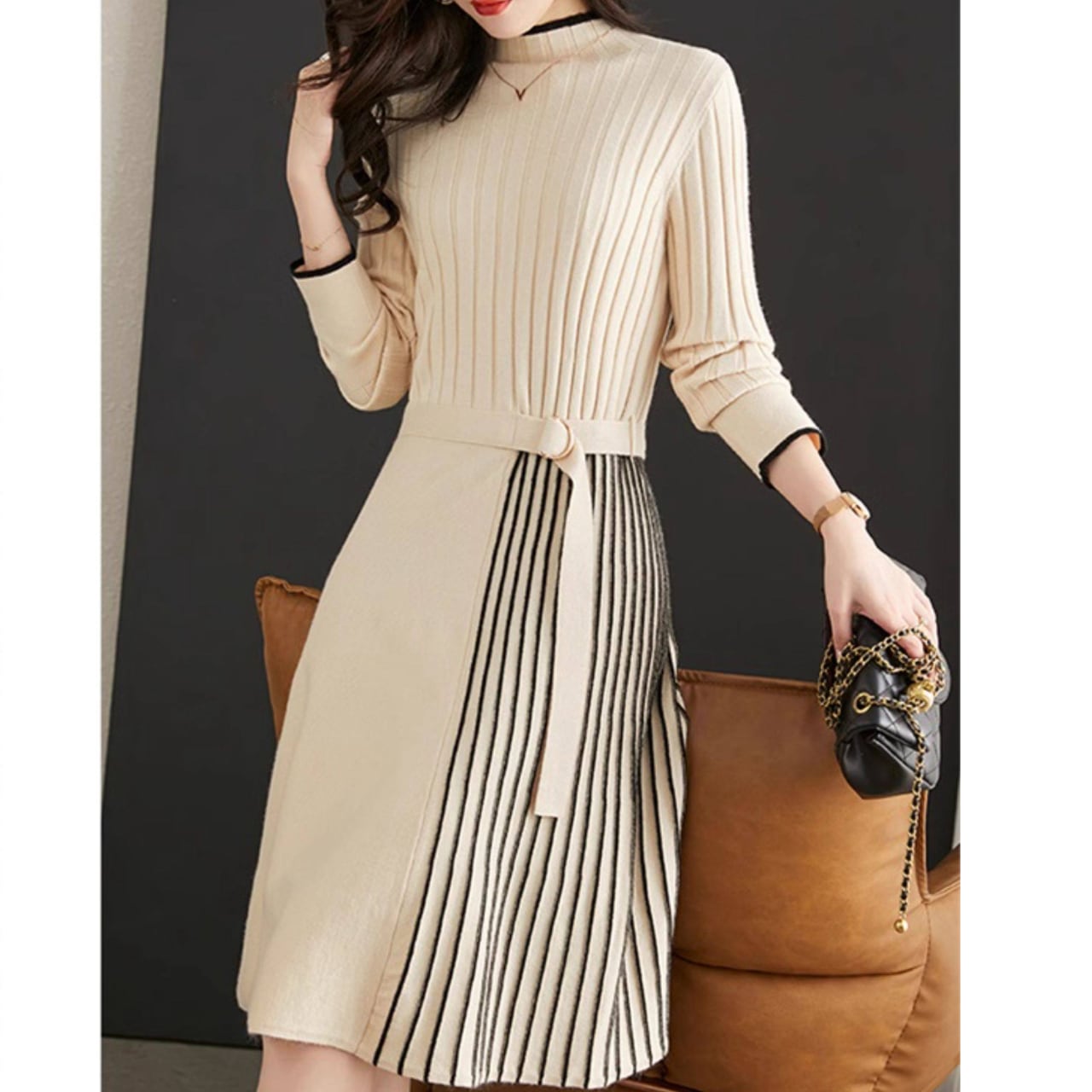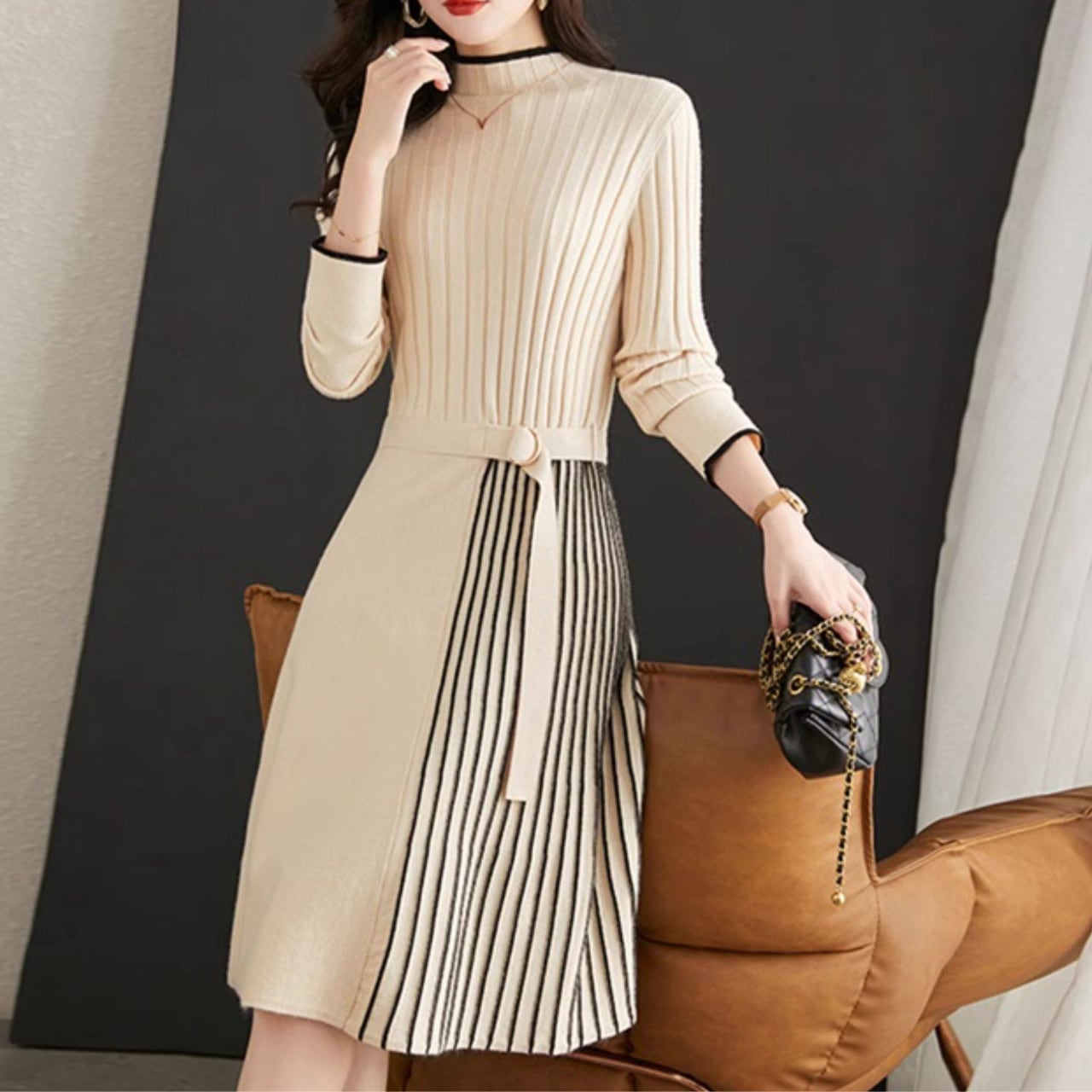 プリーツ切替デザインが、動きのある華やかな印象を演出します。