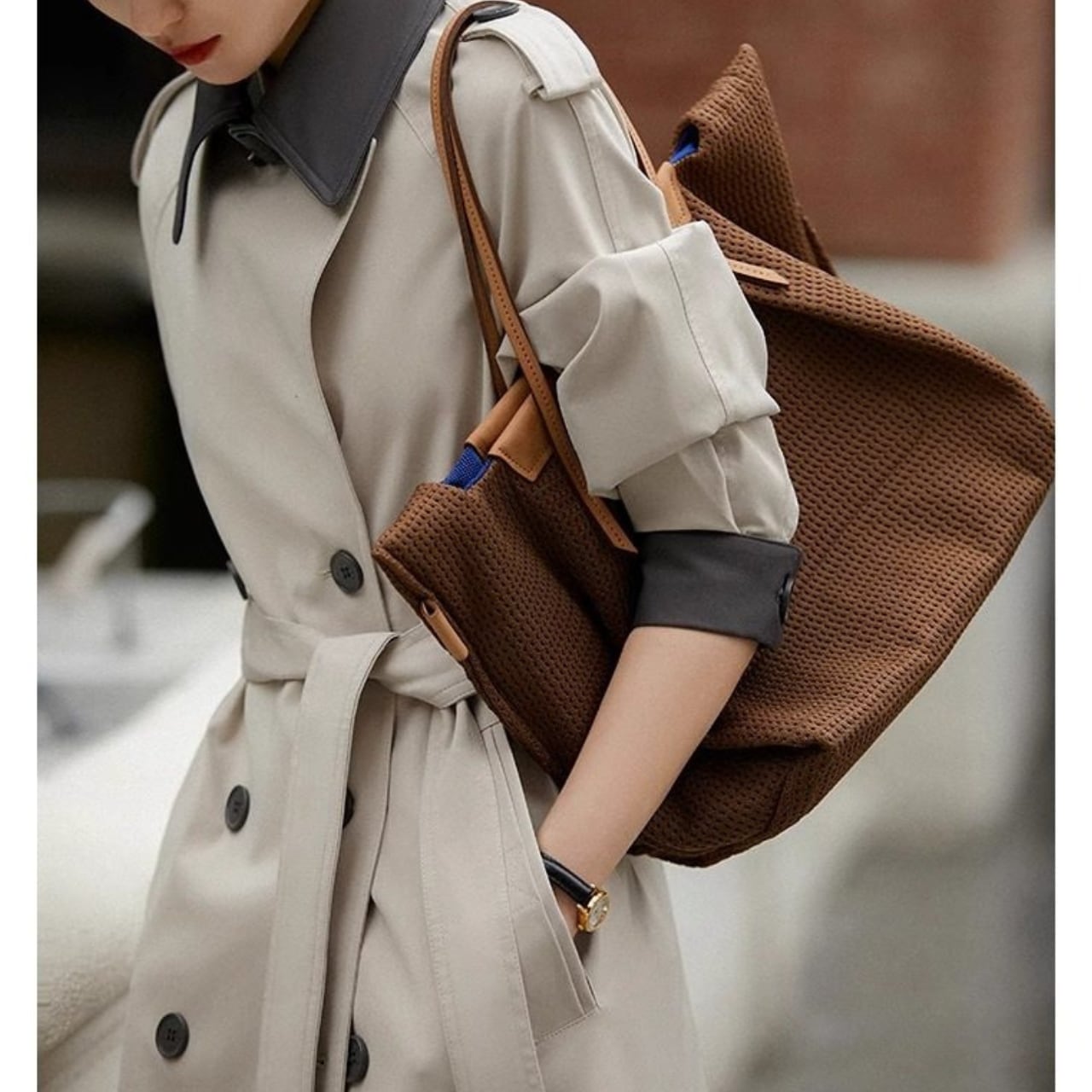 落ち着いた色合いのバイカラーが、上品な大人の雰囲気を演出。