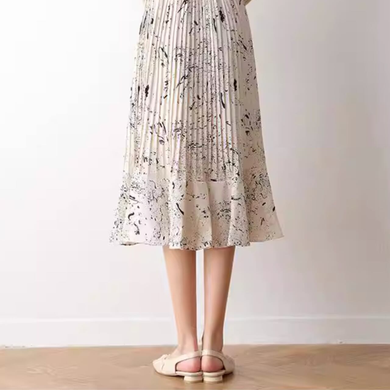 プリーツ加工が施されており、上品で女性らしい印象を与えます。