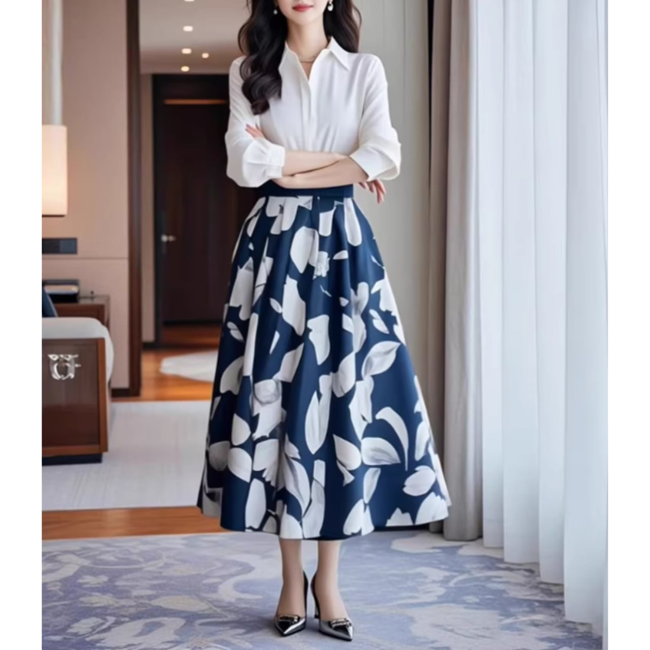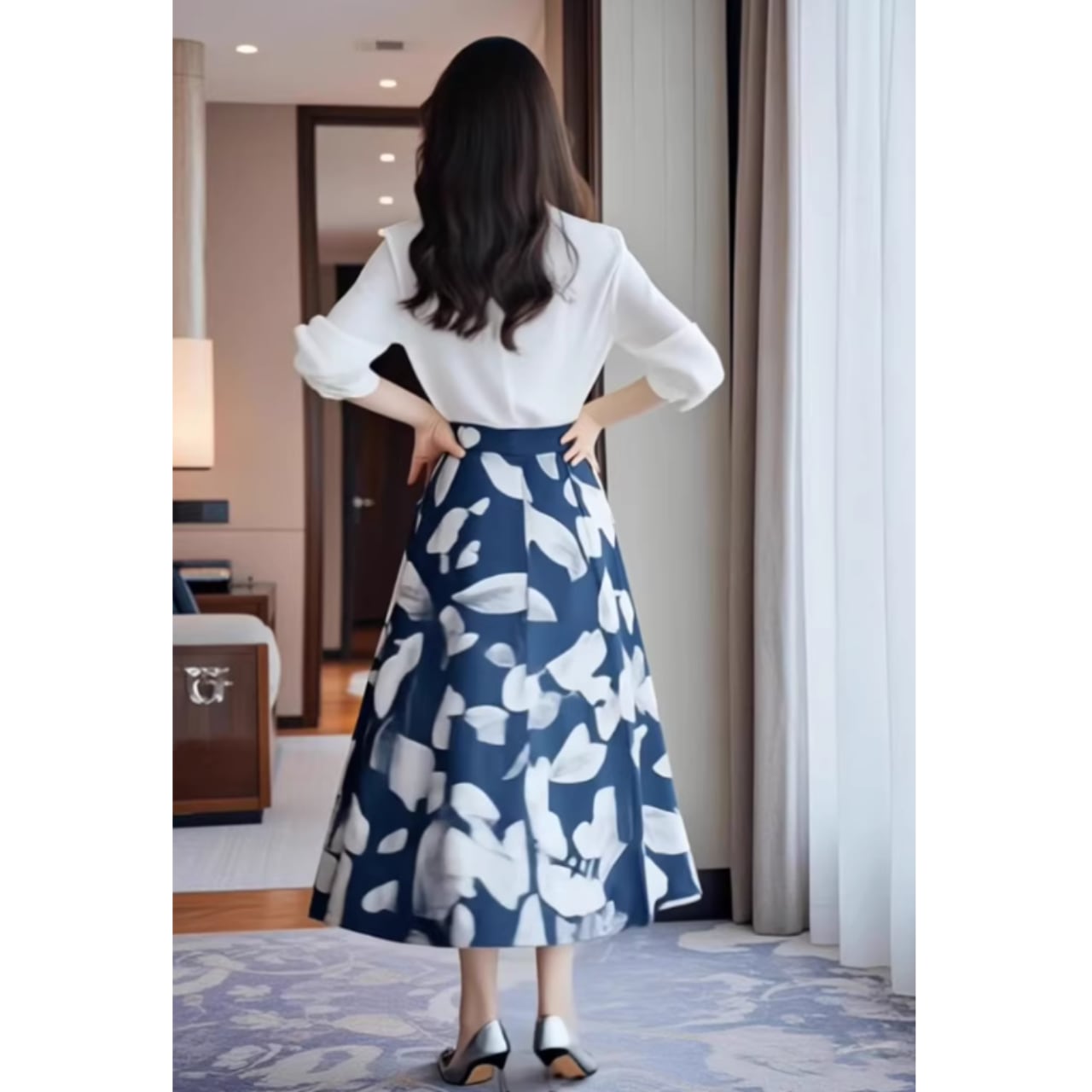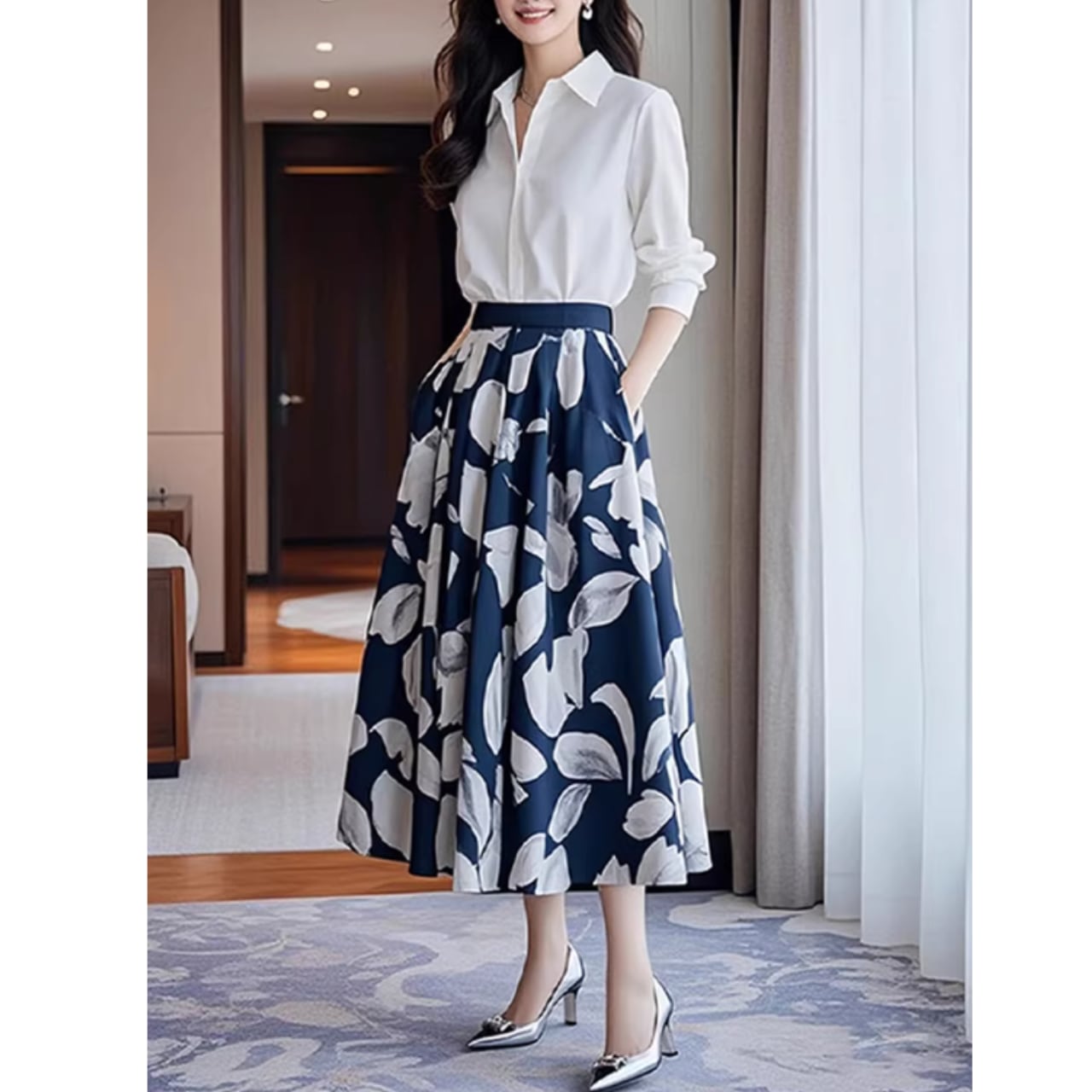 歩くたびに揺れるフレアスカートが、女性らしさを引き立てます。