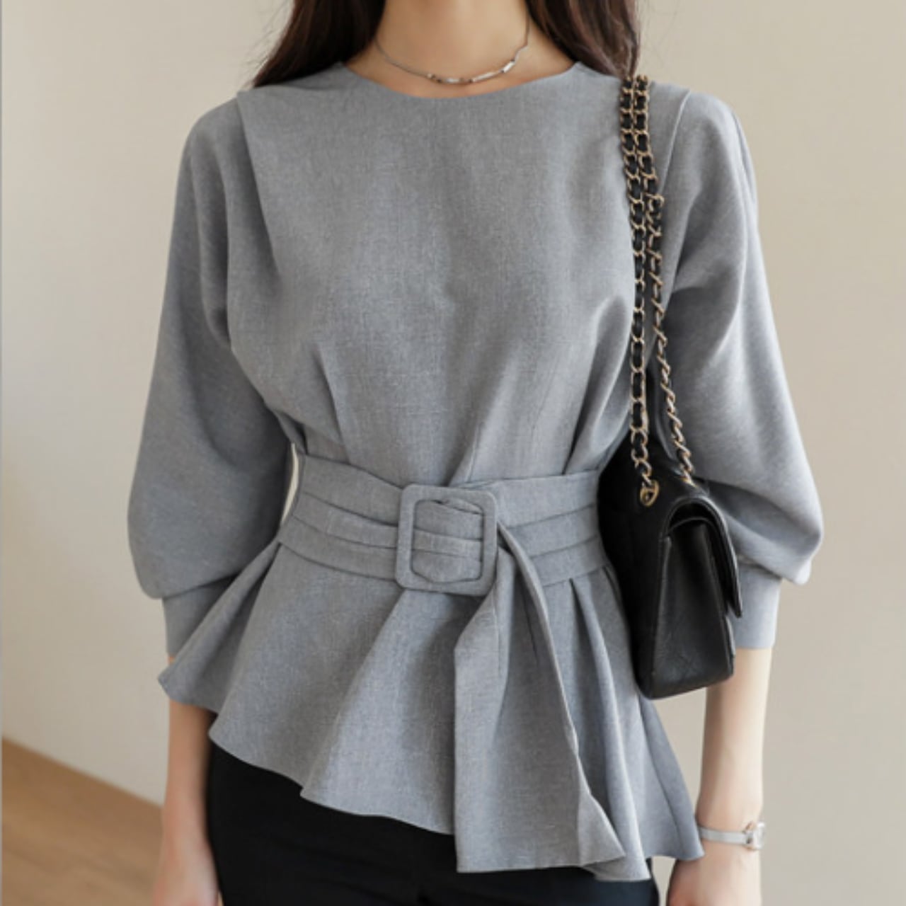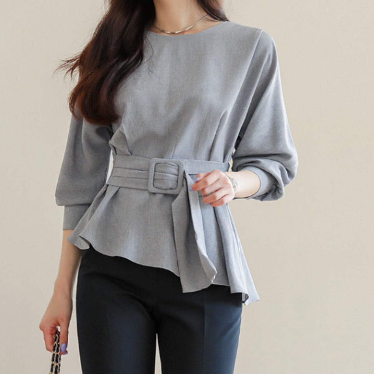 ウエストマークでスタイルアップ効果のある、上品なブラウス。