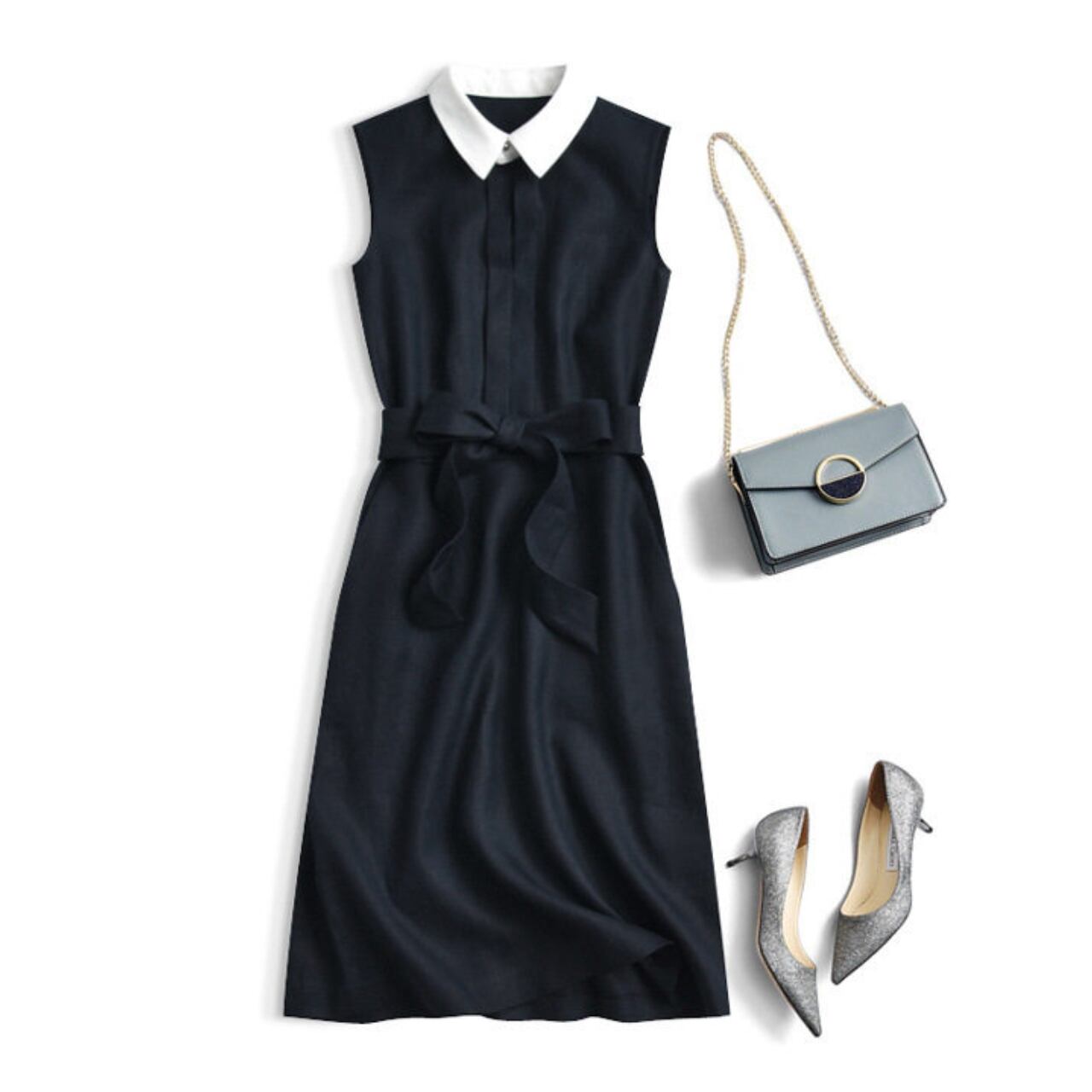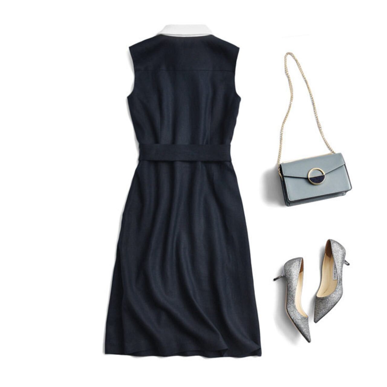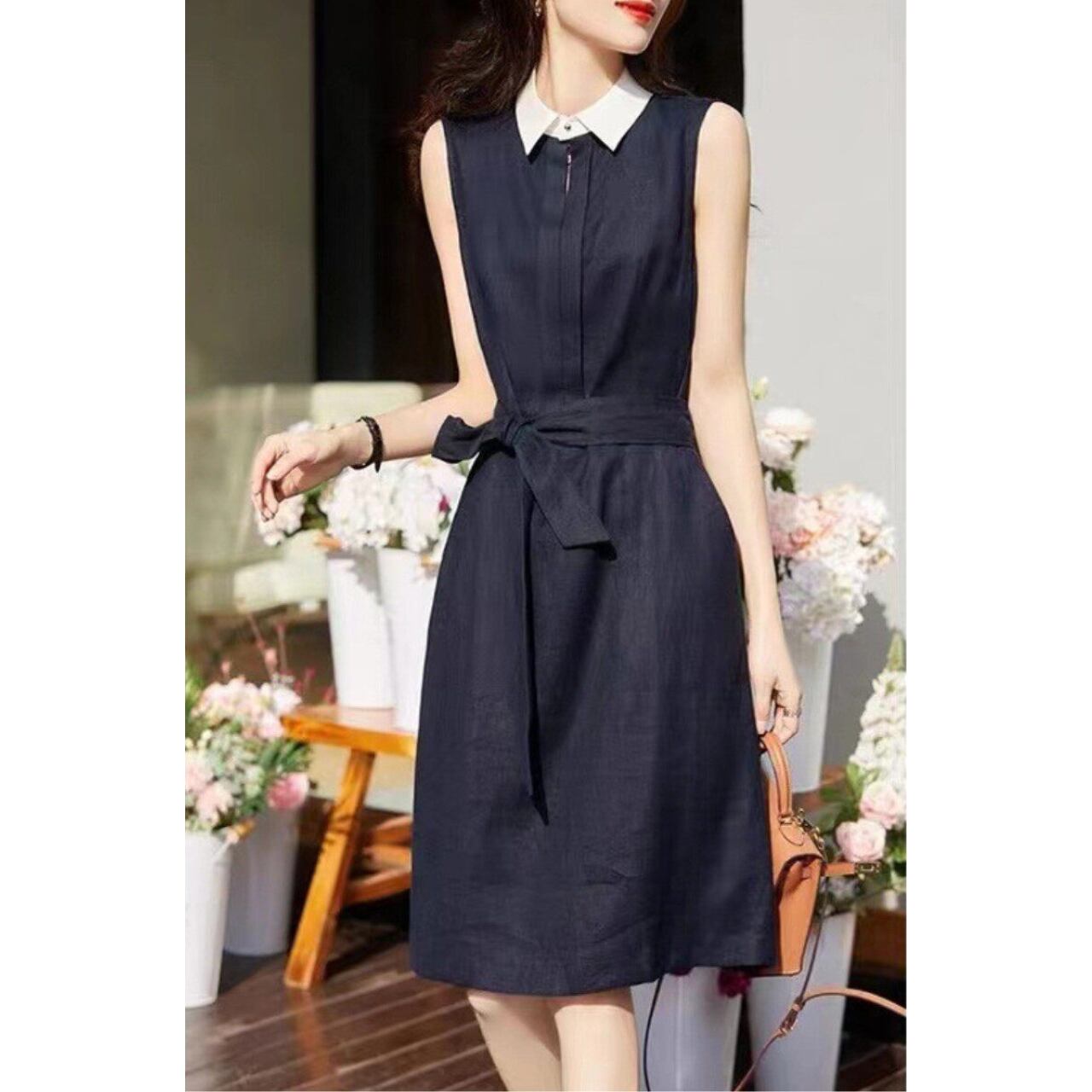 清楚で上品な印象のミモレ丈ノースリーブワンピース。