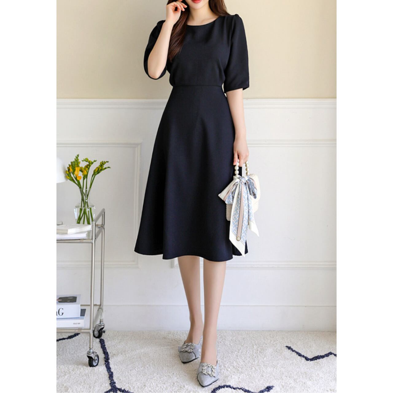 後のリボンが大人かわいいワンピース